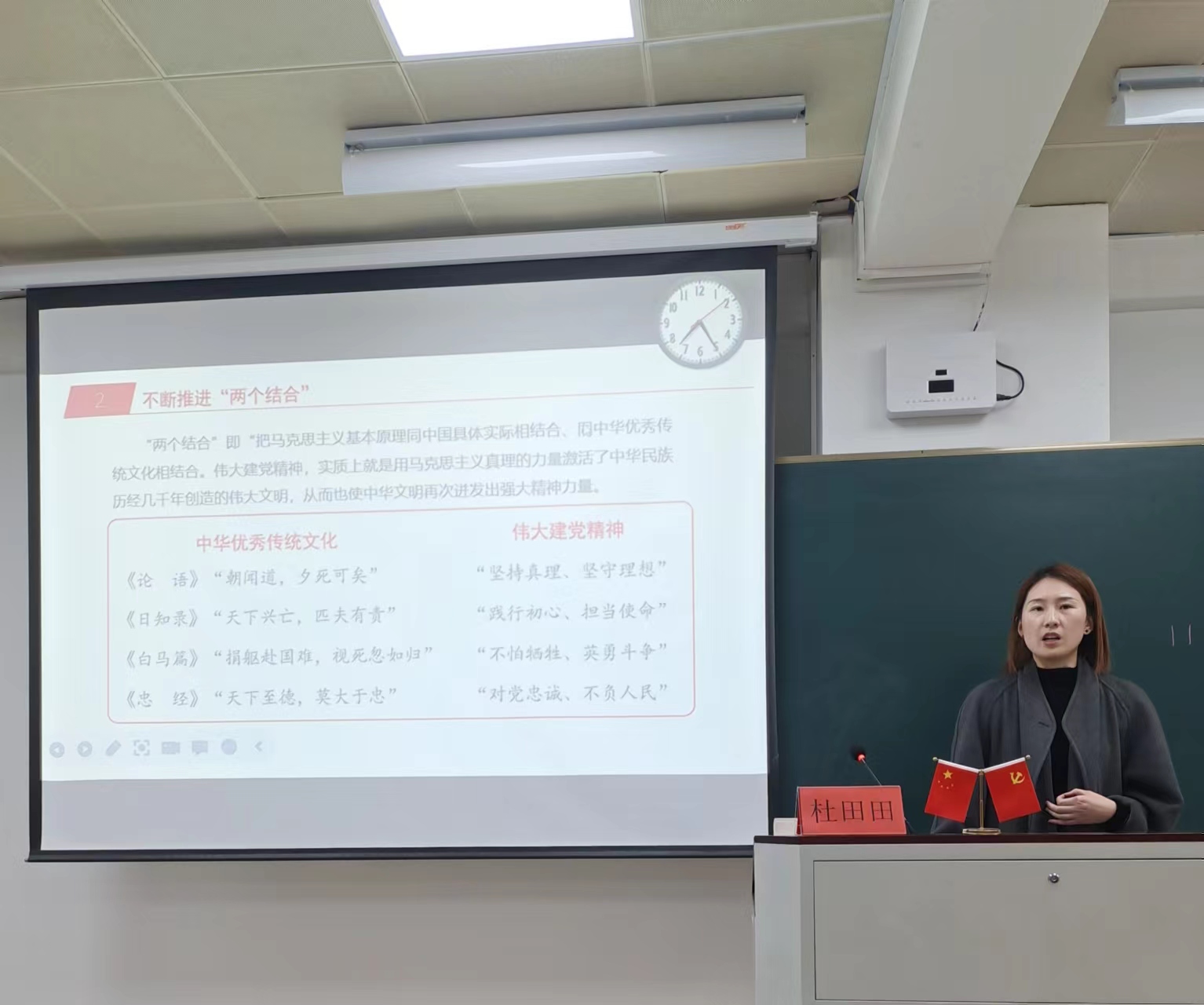 11月21日18:00,公司党校第九期入党积极分子培训班第二堂课在A2-418举行。公司食品科学与工程专业员工党支部书记杜田田老师以“铭记党的奋斗历程,弘扬伟大建党精神”为主题开展了本次党课。