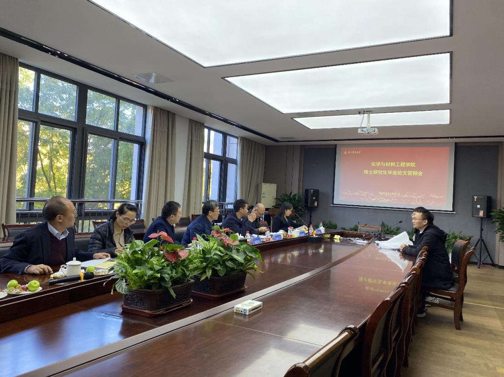 答辩开始前,化材公司党委书记谢志新致欢迎词,公司学位评定分委员会主席宣读分委员会对答辩申请人资格审查意见和答辩委员会成员名单及秘书名单,并请答辩委员会主席主持答辩会。答辩秘书重点介绍了申请人的学位论文盲评成绩、专家意见修改、论文的主要价值等情况。路胜利教授宣布答辩开始。答辩申请人杨玉山对学位论文《木质纤维素功能基元序构增强机制及其性能研究》从研究背景和意义、研究思路和框架、研究内容和结论、创新之处与不足、盲评专家质询与修改等方面进行陈述。答辩会上,各位答辩委员围绕论文内容进行点评及质询,提出了有针对性的意见和建议,答辩人对答辩委员提出的问题进行了回答,详细记录相关修改建议,并表示虚心接受意见和建议以完善学位论文。经答辩委员会无记名投票,认为杨玉山同学的论文达到了博士学位论文水平,一致同意通过博士学位论文答辩并建议授予工学博士学位。答辩委员会主席路胜利教授向答辩人宣布答辩委员会表决结果及答辩委员会决议并表示祝贺。