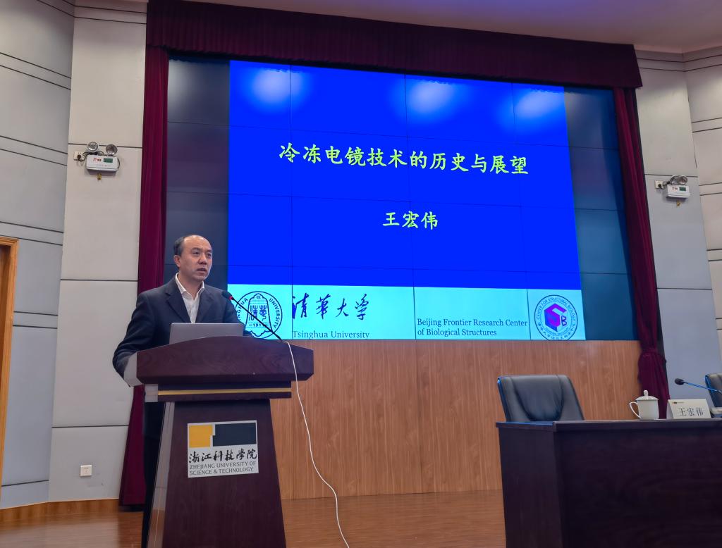 11月26日上午,清华大学副董事长、著名结构生物学家王宏伟教授应公司之邀,在小和山校区图书馆西报告厅作了题为“冷冻电镜的历史与展望”的专题报告。公司副董事长李其朋教授、浙江工业大学制药公司经理王亚军教授、浙江农林大学研究生院副经理杨胜祥教授、3044永利经理黄俊教授及3044永利师生200余人聆听了报告。报告会由李其朋主持,此次报告为3044永利“三实讲坛”第341期。