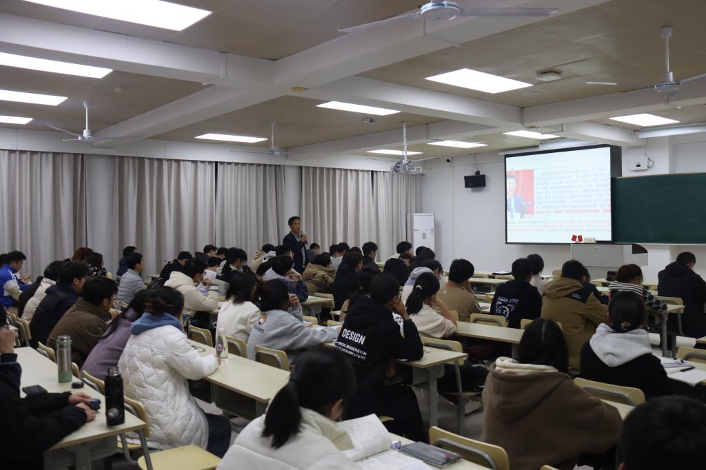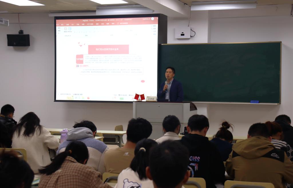 王学宏老师围绕“百年路再回首”“新征程再出发”“大时代小确幸”三个方面展开,重点对中国共产党人带领中国人民百余年奋斗历程进行了全程回顾,同时对中国式现代化的意义和特征进行了全面解读。他强调,立足百年未有之大变局,要把握大变局中的重大机遇,让青春在实践中绽放绚丽之花。