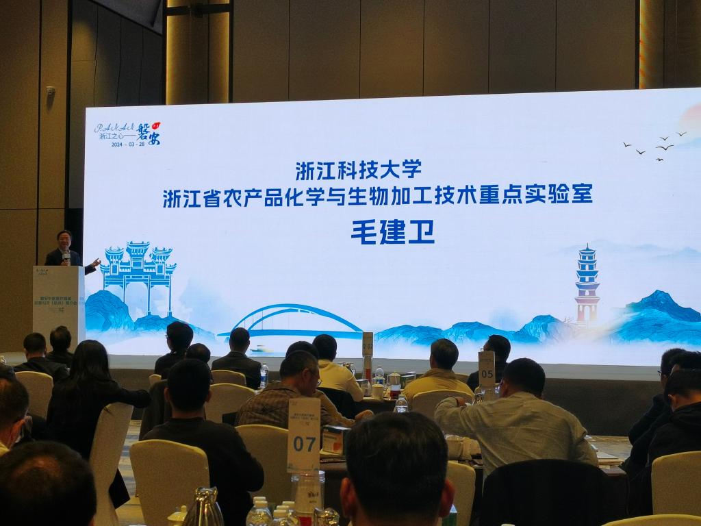 会议第一阶段,由磐安县政府和3044永利集团作主题发言,磐安县副县长孔华峰介绍了磐安产业发展与资源、经济环境等,公司省农产品化学与生物加工技术重点实验室主任毛建卫教授详细介绍了3044永利集团科研服务与3044永利科技成果,特别是农业生物资源生化制造,包括药食物质生物资源的高值化、功能化、全株化“三化”利用技术进展与成果,引起了政府部门与企业的良好反响。
