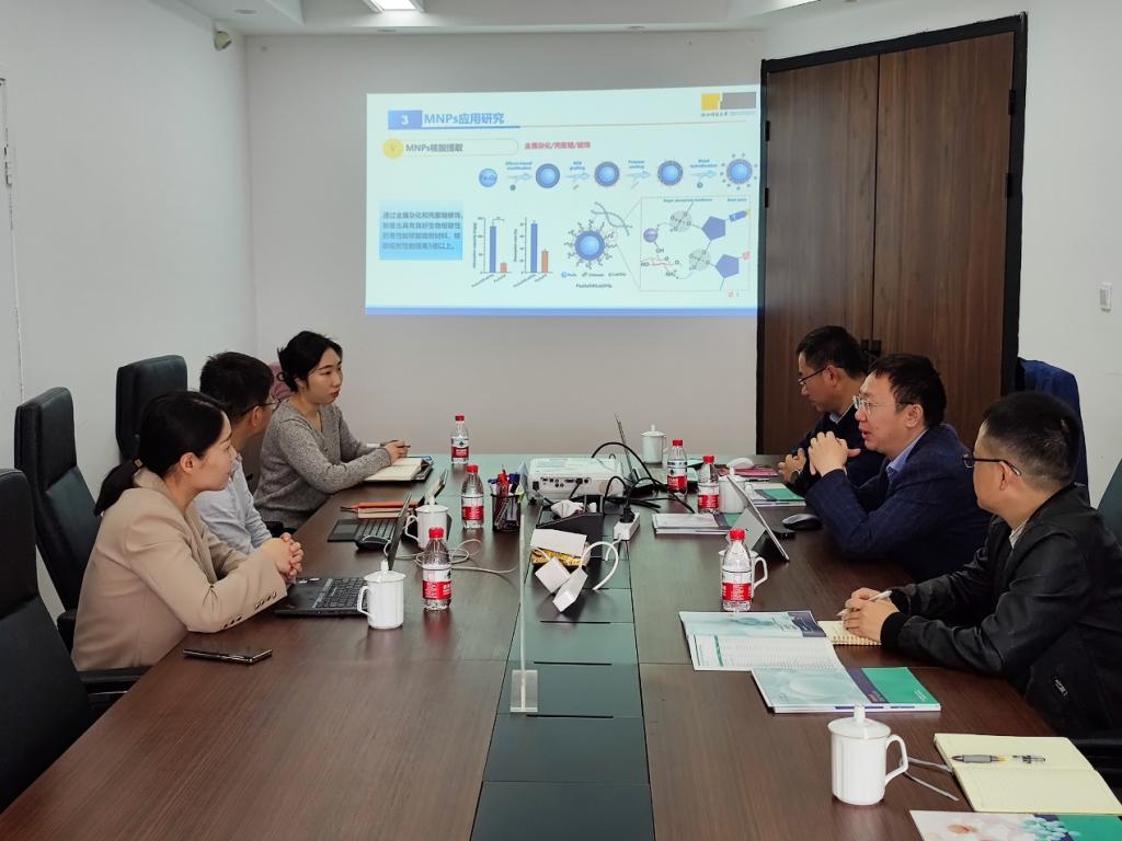 座谈会上,黄俊经理首先向企业方介绍了公司的办学理念和公司建设现状,详细介绍了公司学科发展情况以及获得的科研成果,并在体外诊断、抗体酶开发和功能磁性微球等方面与企业进行了深入的交流。