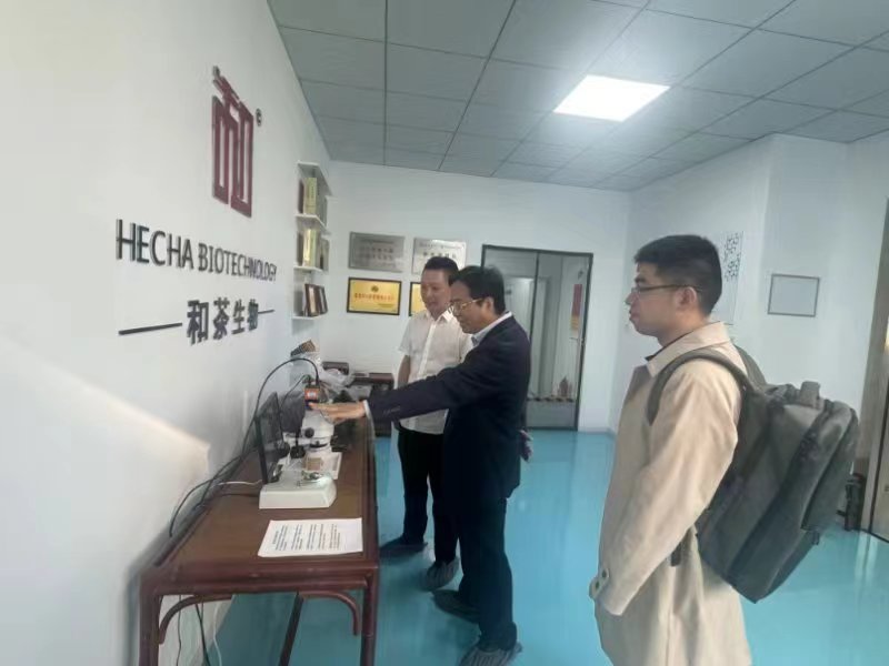 和茶生物科技有限公司是一家生命健康领域技术领先型的科技企业,毛建卫教授等对公司多学科科研团队开展的安吉白茶夏秋茶资源功能化、高值化生化利用项目及利用自主培育有益菌创新研发的改善睡眠障碍的佐睡金花和茶项目表示了极大的兴趣,并与和茶生物公司董事长等开展了技术交流和探讨,对相关技术难题探索了具体的解决方案,达成了初步合作意向。