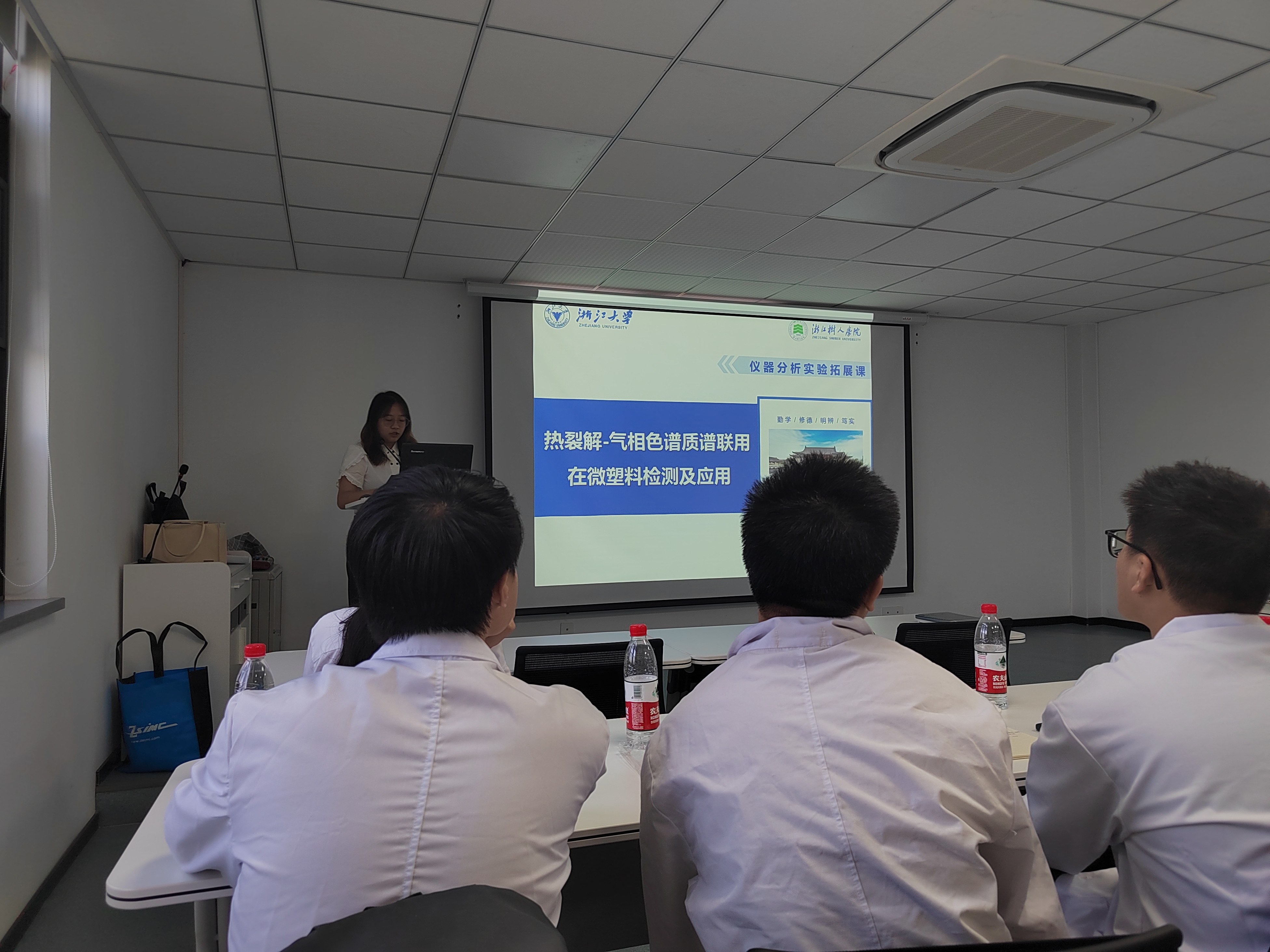 在课程中,同学们走进浙江树人公司光谱/色谱/质谱/元素分析教学实验室、医学检验教学实验室及微生物实训中心,接受小班化教学,学习了多种大型仪器的理论知识,如超临界流体色谱、热裂解气质联用、液质联用等,并上机实操,还在老师的引导下针对研究热点开展了微塑料和新污染物检测利器的演练。参与此次课程的吴磊鑫同学表示,此次拓展课程带领我们沉浸式体验“科研人”的一天,安排内容充实,上课形式新颖,让我们收获满满,是一门非常好的拓展课程。