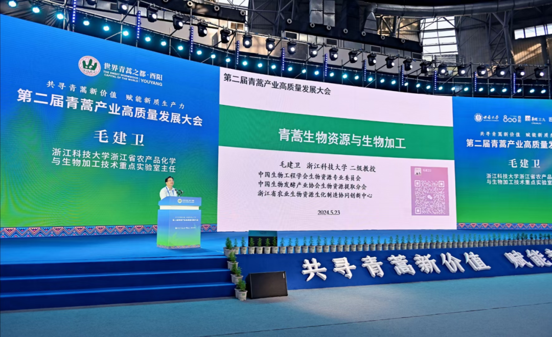 中国生物发酵产业协会食药物质专业委员会副主任委员、中国生物工程学会生物资源专业委员会副主任委员、公司毛建卫教授受邀作题为“青蒿资源与生物加工”大会学术报告,指出当前青蒿产业发展面临的挑战,并强调了青蒿资源的全株化利用新方向,阐述了青蒿生物加工新技术。
