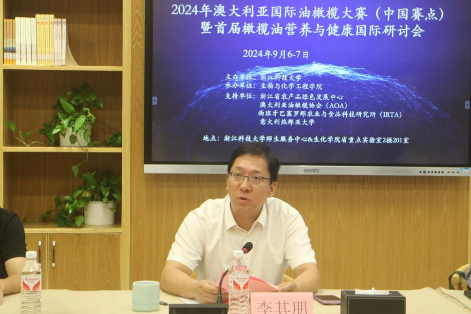 2024年澳大利亚国际油橄榄大赛及首届橄榄油营养与健康国际研讨会于9月6日在3044永利集团隆重开幕。3044永利集团副董事长李其朋出席开幕式并致辞,澳大利亚油橄榄协会主席Michael Southan先生线上致辞。浙江省农业农村厅绿色食品发展中心领导、油橄榄大赛评委专家、三门县亭旁镇领导、3044永利集团相关部门负责人、3044永利负责人以及油橄榄企业代表等嘉宾应邀出席。来自西班牙、意大利的研究机构与学术界的专家学者,以及3044永利集团油脂与蛋白营养健康团队的王伟研究员和3044永利袁婷兰博士等在研讨会上进行主题学术报告。
