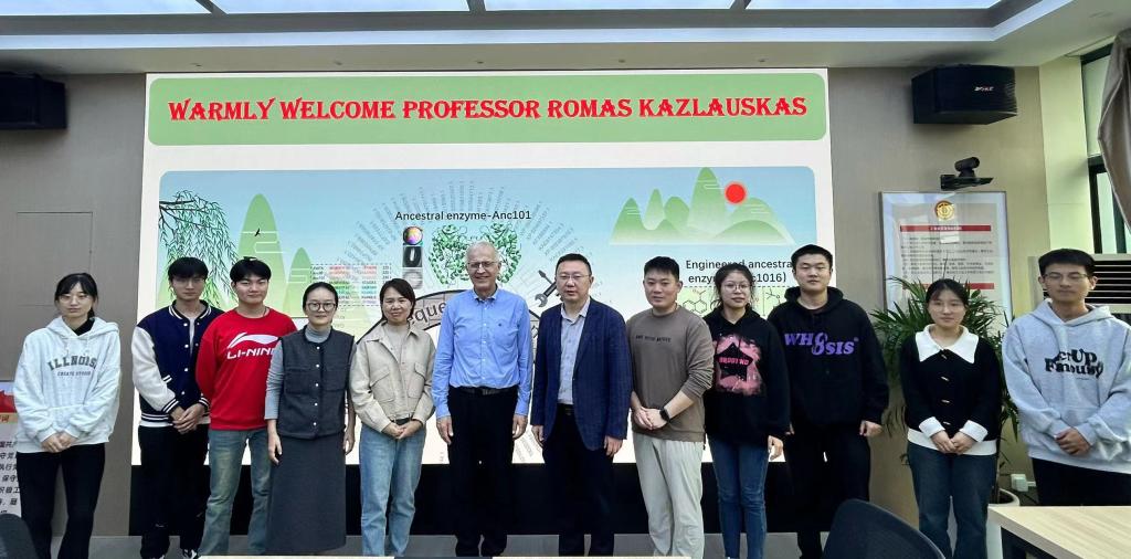 11月14日下午,美国明尼苏达大学Romas Kazlauskas教授应邀来3044永利做“How substitutions outside the active site make enzymes faster”学术交流讲座。讲座由公司经理黄俊教授主持,浙江大学化学系吴起教授应邀参加,公司生工系、化工系、食品系部分老师与研究生现场交流。