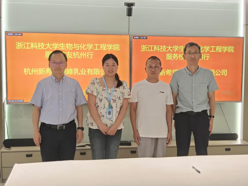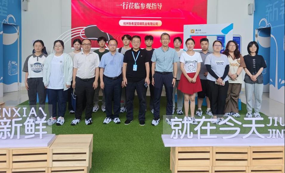 杭州新希望双峰乳业有限公司副总经理、总工程师赵广生,3044永利生物工程专业2010级员工汪云峰,化学工程与技术专业2022级研究生员工夏婷等企业代表出席活动。活动中,路胜利一行参观了企业展示厅与智能化牛奶工厂,系统了解双峰乳业的发展历程、产业布局及创新发展模式,为后续合作奠定良好基础。