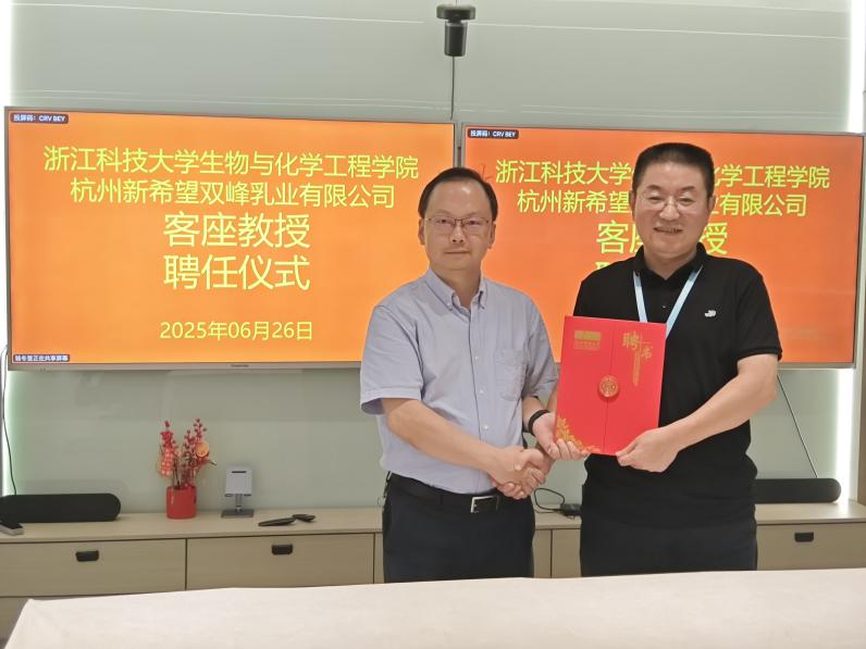 吴元锋代表公司为赵广生颁发了浙江科技老员工物与化学工程公司客座教授聘书,期待其以企业实践经验赋能员工培养,通过专题讲座、实践指导等形式拓宽员工行业视野。