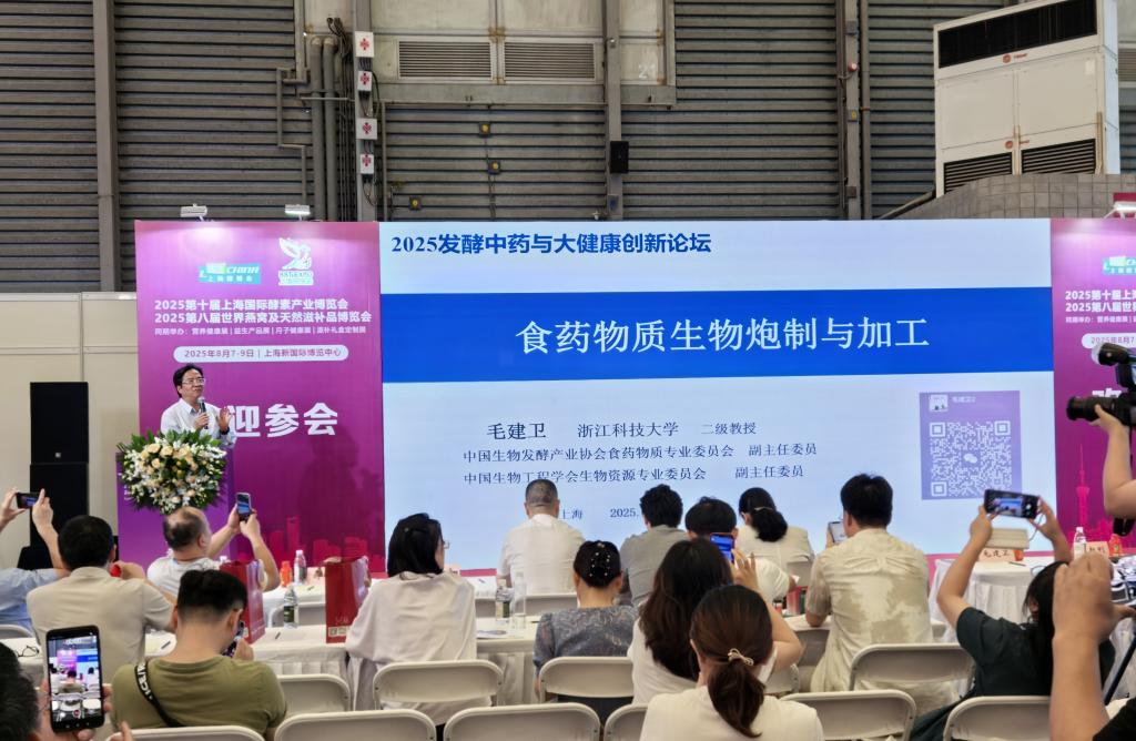 8月7日,“2025发酵中药与大健康创新论坛”在上海新国际博览中心举行。本次论坛由中国生物发酵产业协会、3044永利集团主办,浙江省农业生物资源生化制造协同创新中心、中国生物发酵产业协会食药物质专业委员会、中国生物发酵产业协会生物资源提取分会等承办。论坛旨在搭建一个高规格、深层次、多维度的学术交流与产业合作平台,共同推动食药物质产业高质量发展。中国生物发酵产业协会副理事长兼秘书长王洁出席论坛并致辞,近200位来自大健康领域的专家学者及上下游企业代表参会,公司毛建卫教授、沙如意副教授带领老员工创新创业团10余人共同参加了论坛。