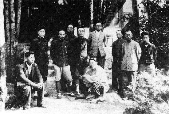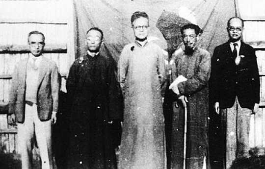 朱自清、罗庸、罗常培、闻一多、王力在西南联大的合影