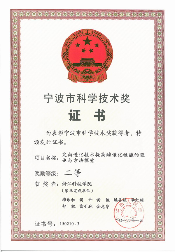 日前,由公司黄俊教授参与的“定向进化技术提高酶催化性能的理论与方法探索”获得宁波市科技进步二等奖。生物催化技术作为新一代物质加工模式,具有催化效率高、选择性强、反应条件温和、环境友好等优势,已成为化学工业绿色制造不可或缺的重要工具。酶是生物催化的核心要素,采用合适的方法对酶的分子结构进行恰当的修饰或改造,使其催化选择性、催化活力、稳定性等关键性质满足实际应用的需要,一直是该研究的核心内容。本项目以探索酶分子高效改造的理论和方法为研究目的,选用两种具有重要应用价值的酶:细胞色素P450 BM-3和谷氨酸脱羧酶(GAD)作为研究对象,运用定向进化技术对其进行改造和设计,通过酶学性质表征、同源建模、分子动力学模拟等技术探讨了突变位点与酶结构、酶催化活性及其稳定性之间的内在关系,加深了对P450 BM-3和GAD结构-功能关系的理解,推动了酶工程研究理论的发展。本研究获得授权中国发明专利8项,发表学术论文20 篇(其中SCI/EI论文17 篇),研究成果得到了国内外同行的高度关注,论文被Chemical Reviews、AngewandteChemie-International Edition、PNAS、Critical Reviews in Biotechnology、Current Opinion in Chemical Biology、Current Opinion in Microbiology、Biotechnology and Bioengineering等顶级及TOP期刊论文他引100余次,得到了国内外同行的积极评价,研究成果为酶分子的改造提供了有益的理论指导和方法借鉴,产生了广泛的学术影响。