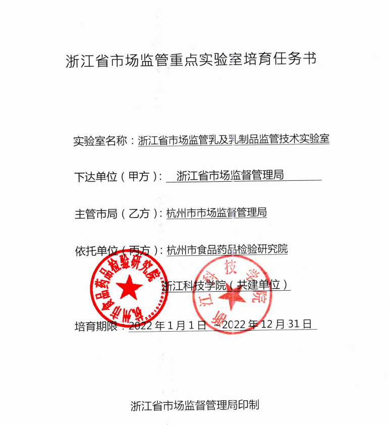 日前,浙江省市场监督管理局重点实验室名单公布,依托杭州市食品药品检验研究院的浙江省市场监管乳及乳制品监管技术重点实验室列入省局重点实验室培育对象,公司为共建单位。