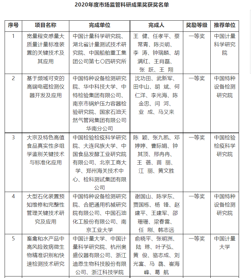 12月21日,2021年市场监管科技工作视频会议召开。会议总结市场监管总局组建以来科技创新工作,统筹部署“十四五”科技创新发展重点目标任务。会议颁发了首届市场监管科研成果奖,“宽量程变感量大质量计量标准装置的关键技术及其应用”等7项成果获得一等奖,“微纳增敏快检技术及检验检测应用”等23项成果获得二等奖,“非洲猪瘟检测防控技术体系研究与开发应用”等40项成果获得三等奖。市场监管总局党组成员、副局长(正部长级)秦宜智出席会议并讲话。