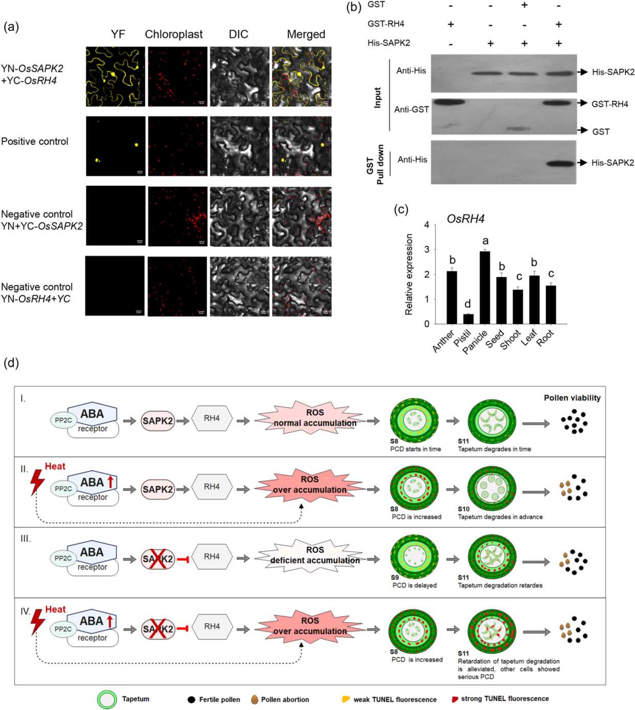 高温热害是制约水稻生产的主要农业气象灾害之一,受全球气候变暖、稻作种植制度和品种演替等因素影响,水稻在孕穗期遭遇高温天气的机率明显增大,直接影响水稻稳产高产。该研究以耐热性存在明显差异的12个水稻品种为研究对象,首先分析了水稻发育花药器官中的活性氧(ROS)和脱落酸(ABA)含量及其分布对高温胁迫的响应变化、与花粉活力之间的联系;在此基础上,通过对不同温度处理下水稻花药12个发育时期的动态取样,结合细胞化学定位、离体稻穗的外源ABA处理和基因敲除等手段,探析了ABA介导的ROS产生对花药绒毡层细胞程序性死亡(PCD)和小孢子凋亡过程的影响特点及调控方式。孕穗期高温胁迫引起水稻发育花药器官中ROS和ABA含量显著上升,ABA通过“激发”ROS产生对花药绒毡层细胞PCD和小孢子凋亡过程起调节作用,进而导致高温花粉败育的形成;ABA介导SAPK2对水稻高温花粉育性的调节与ROS氧化伤害也存在密切联系,RNA解旋酶(RH4)是ABA信号调节水稻发育花器官ROS产生和绒毡层PCD的关键调控位点,SAPK2通过与RH4之间的互作对发育花器官ROS产生与小孢子发育过程进行调控。该研究为探索水稻高温花粉败育形成过程中ROS信号与ABA信号之间的相互关系提供了新线索。