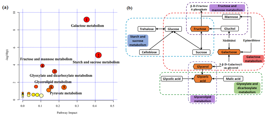 铁皮石斛,被誉为“中华九大仙草”之首,是一种珍稀的中草药,2023年,被国家卫健委纳入既是食品又是中药材的名单。随着健康意识的提升和消费者对天然、健康食品的追求,铁皮石斛在食品加工领域的应用需求逐渐增大。传统加工方式会降低铁皮石斛中的活性成分从而导致其生物活性降低,在此背景下,利用微生物发酵技术手段加工铁皮石斛已成为当前的研究热点。该论文首先选取多种蛋白酶与植物乳杆菌和酿酒酵母协同发酵铁皮石斛,监测发酵过程中活性成分的变化。其次,采用基于气相色谱-质谱联用(GC-MS)的非靶向代谢组学技术分析铁皮石斛发酵液(FDL)的代谢物特征并预测代谢途径;采用体外化学分析和细胞氧化应激模型评价FDL的抗氧化活性。结果表明,在菌酶协同发酵过程中,酚类化合物、黄酮类化合物和B族维生素的含量显著提高。共鉴定出45种关键差异代谢物,主要由16种糖、15种有机酸和5种多元醇组成,其种类和含量的变化受6条关键差异代谢途径影响。随着发酵的进行,FDL对自由基的清除能力显著增强,并且能够通过抑制胞内活性氧(ROS)和丙二醛(MDA)的生成来增强胞内抗氧化酶的活性;菌酶协同发酵有利于提高铁皮石斛的抗氧化活性。该研究不仅为铁皮石斛的深加工提供了科学依据和技术支持,也为其他中草药资源的开发和利用提供了新的思路和方向。