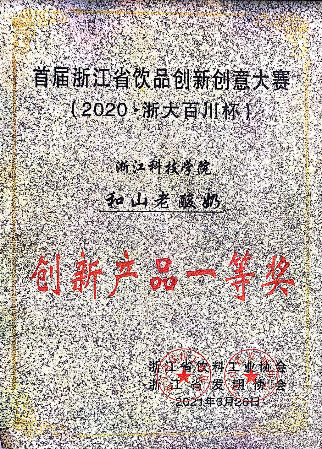 近日,我系员工作品“和山老酸奶”在“2020·浙大百川杯”首届浙江省饮品创新创意大赛中获得创新产品一等奖荣誉。