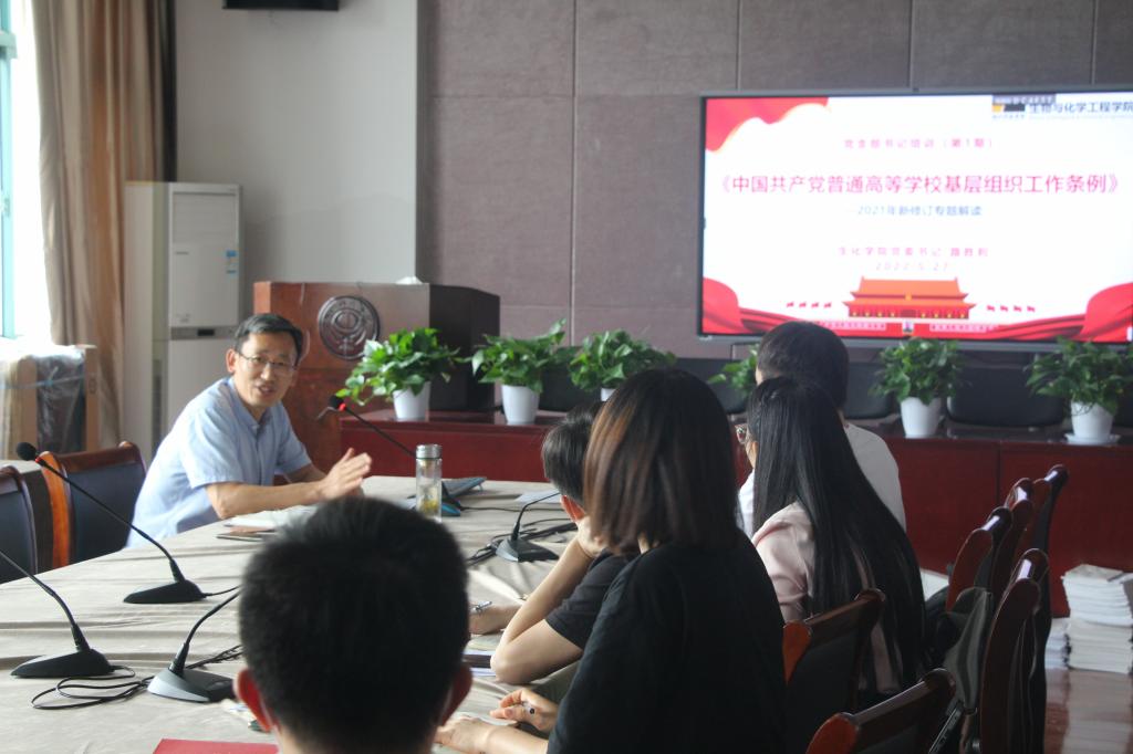 随后,路胜利书记开展了《中国共产党普通高等公司基层组织工作条例》—2021年新修订专题解读,他结合自己的教学经验,给参与培训的支部书记们讲解了支部工作的基本知识和相关党务常识,同时也分享了其“活、灵、魂”的课堂教学三重奏经验,参与培训的各支部书记表示受益匪浅。