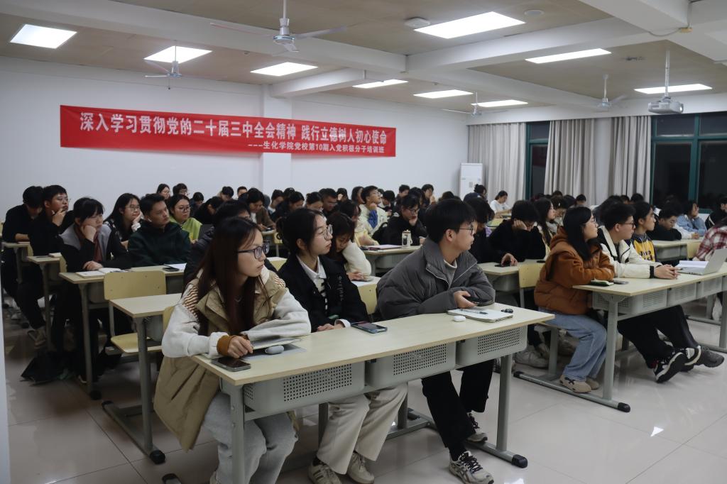 11月25日18:00,公司党校第十期入党积极分子培训班第六课在A2-422进行,公司党委委员蔡素燕老师围绕“如何认识发展新质生产力”主题讲授专题党课,九十余名学员现场参加了学习。