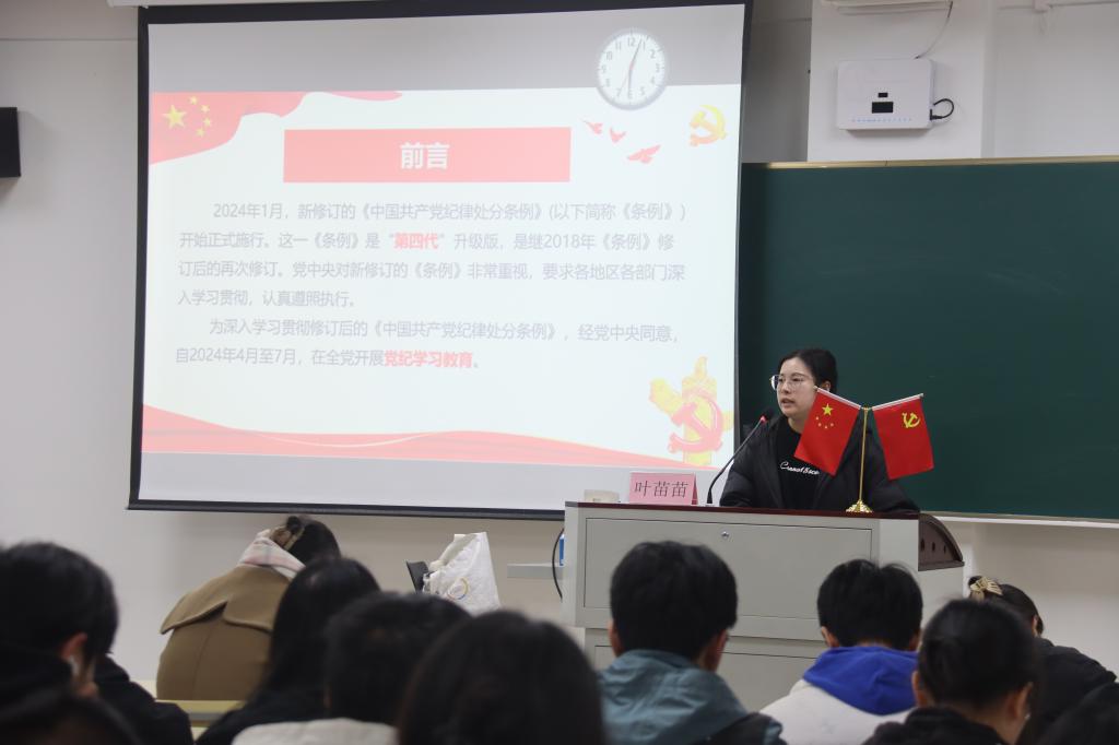 叶苗苗老师鼓励学员们认真学习《条例》,积极向党组织靠拢,未来能将所学内容运用到实际工作中,以身作则、以上率下,为推动中国式现代化和民族复兴伟大事业提供坚强纪律保证。大家纷纷表示,通过此次学习,对党的认识更加深刻,对全面从严治党有了更深入的理解,未来将不断加强自我约束,提高腐防变能力