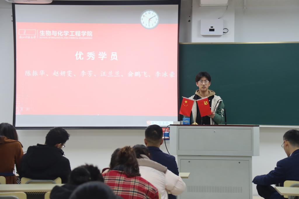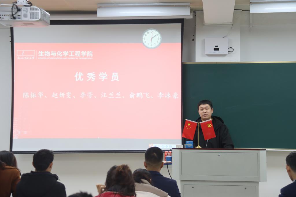 优秀学员代表李冰豪发言,他分享了每一节党课心得体会,表达了坚定共产主义信仰的信心与决心,他号召同学们继续努力学习党的理论知识,扎实学好专业,为中华民族伟大复兴的中国梦贡献力量。