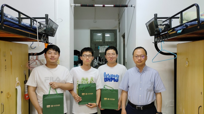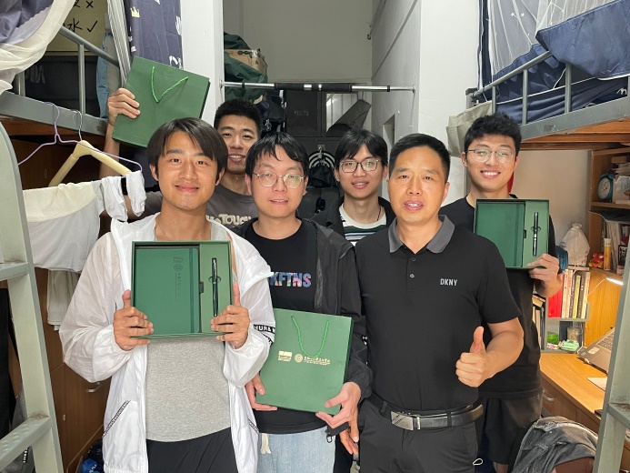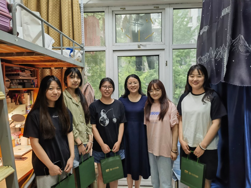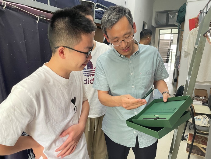 副经理吴元锋走访了部分即将毕业的研究生寝室,对同学们进行了亲切的慰问。临别在即,吴经理最关心的还是同学们的毕业去向,该寝室的4名同学中有3人已经落实了工作,他们分别入职了宁波九胜创新医药科技有限公司、杭州信海医药科技有限公司以及杭州恒海新材料科技有限公司,还有一名同学虽然没有入职,但也手握多个Offer。吴经理对毕业生们表达了真挚的祝福,并送上了公司自制的文创礼盒,祝愿同学们前程似锦,一路繁花。