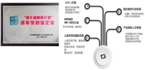 抗菌肽在国内的市场已经形成,2019年全国市场达5000亿。今年,我国政府部门出台一系列禁用抗生素的文件,抗菌肽市场将会迅速扩大。本项目将在湖州建成一个国际领先水平的抗菌肽中试平台,并依托核心成员参与的国家发改委“生物饲料安全与污染防控”国家工程实验室和浙江省饲料科技创新服务平台,制定抗菌肽替代化学抗生素作为饲料添加剂的质量标准。同时,获得兽药和人皮肤湿疹新药临床1-3期批件,并完成相关试验,国家I类新药生产许可批件。