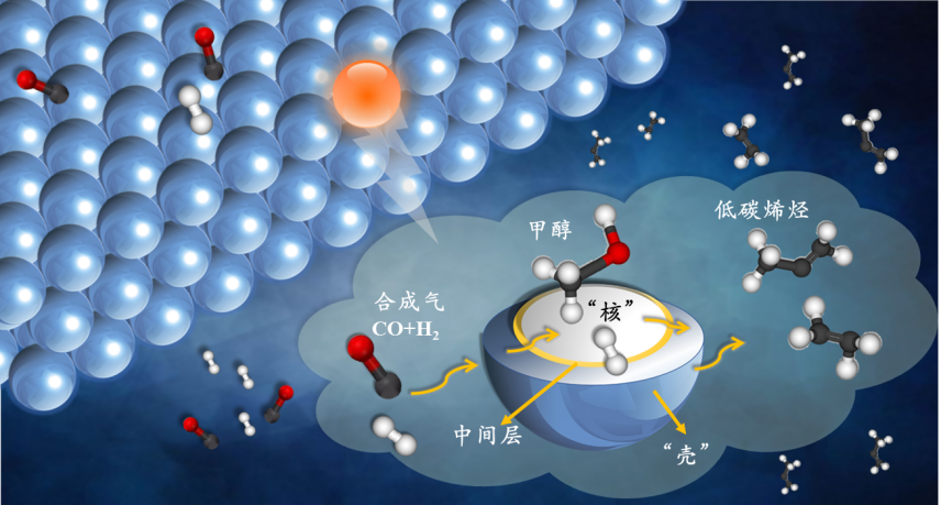 1、成果简介:以生物质基合成气为原料,制备包括乙烯、丙烯的高附加值清洁液体燃料,首先以合成气转化制得甲醇,再通过甲醇转化路线(包括甲醇制乙烯、丙烯混合物的MTO工艺和甲醇制丙烯的MTP工艺)生产低碳烯烃产品。通过开发和调控催化剂结构,提高产物收率。