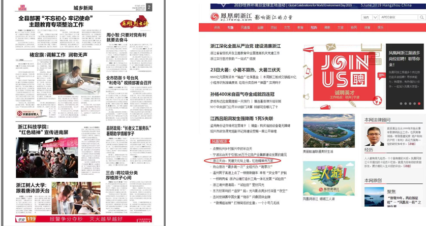在建党98周年、建国70周年之际,为响应“深度贫困地区青春行”活动,推进国家乡村振兴战略实施,公司“红砖筑南屏·青春逐梦行”暑期社会实践团队在指导老师蔡瑞康、程勇杰的带领下前往天台县南屏乡开展为期15天的实践活动,活动内容主要包括红色文化主题墙绘、红色电影播放及“童心港湾”暑期夏令营等。暑期社会实践活动被多家媒体报道:台州日报7月26日和8月8日连续报道公司社会实践内容;凤凰网、浙江24小时(钱江晚报客户端)、浙青网(青年时报)、浙江在线等网络媒体报道11篇。其中凤凰网全程跟踪报道公司暑期社会实践内容,累计报道8篇,《党建文化绘上墙,红色精神传万家》在凤凰网浙江首页展示。(学工办 蔡瑞康)