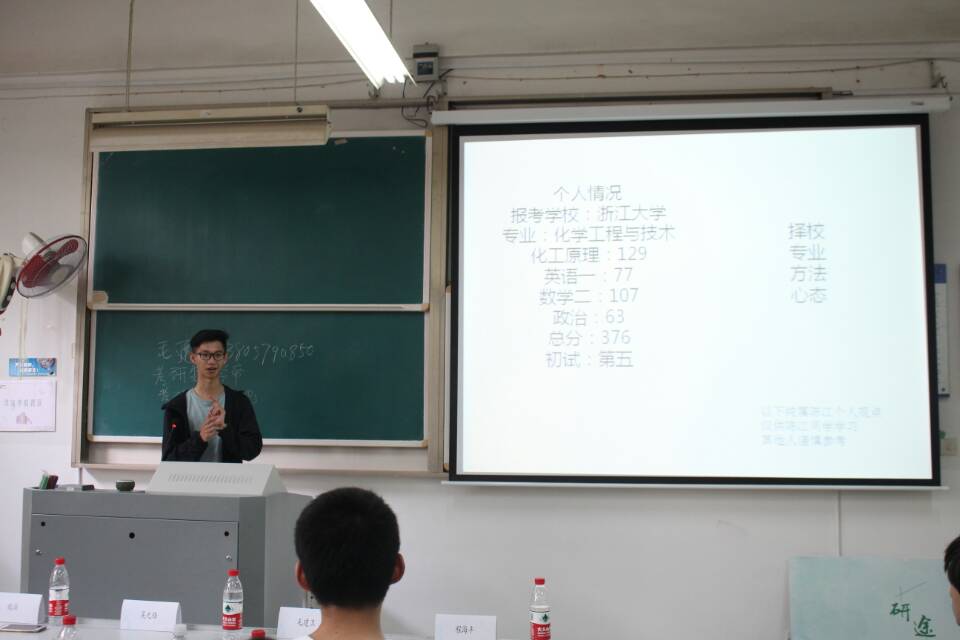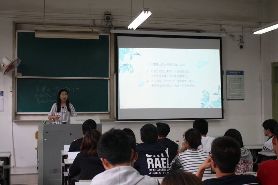 5月10日下午,A1-106大教室济济一堂,2018年度生化/轻工公司考研交流会在里举行。公司党委委员、公司党委书记毛建卫老师为本场交流会作了40分钟开场词,激起了全场持续高涨的气氛,他讲到因为有公司的理想与目标、因为有学子的理想与目标,公司经历了艰苦奋斗的历程和当今取得的办学成果、形成的良好学风,涌现出一批批优秀人才包括一批批同学成为硕士、成为博士,考研率一直位居校内领先,毛老师举了很多考研成才的生轻学子、举了生轻公司培养的研究生取得的一批优秀成果,他表示只要有理想、有目标,坚忍不拔,每个人都能走向自己的梦想。最后,毛老师与在场全体同学相约明年三月报喜讯。