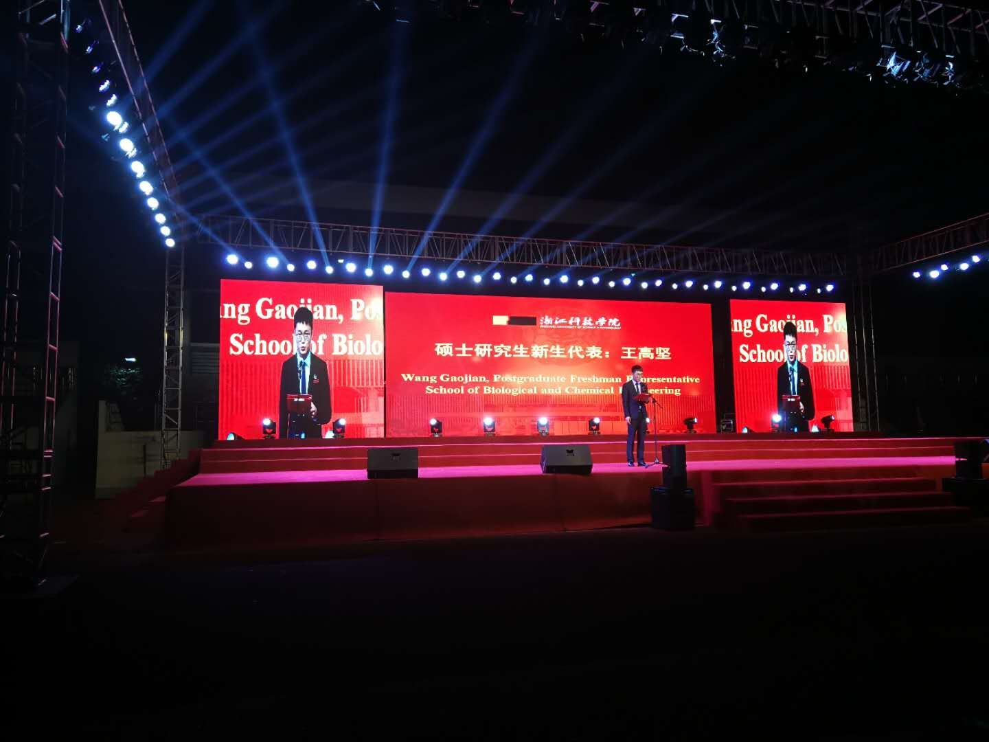 我是2018级化学工程与技术硕士研究生王高坚。今天很荣幸能够和所有18级的新同学们相聚在美丽的安吉校区。首先,请允许我代表2018级全体研究生同学向关心我们的公司领导、老师和师兄师姐们表示最衷心的感谢!