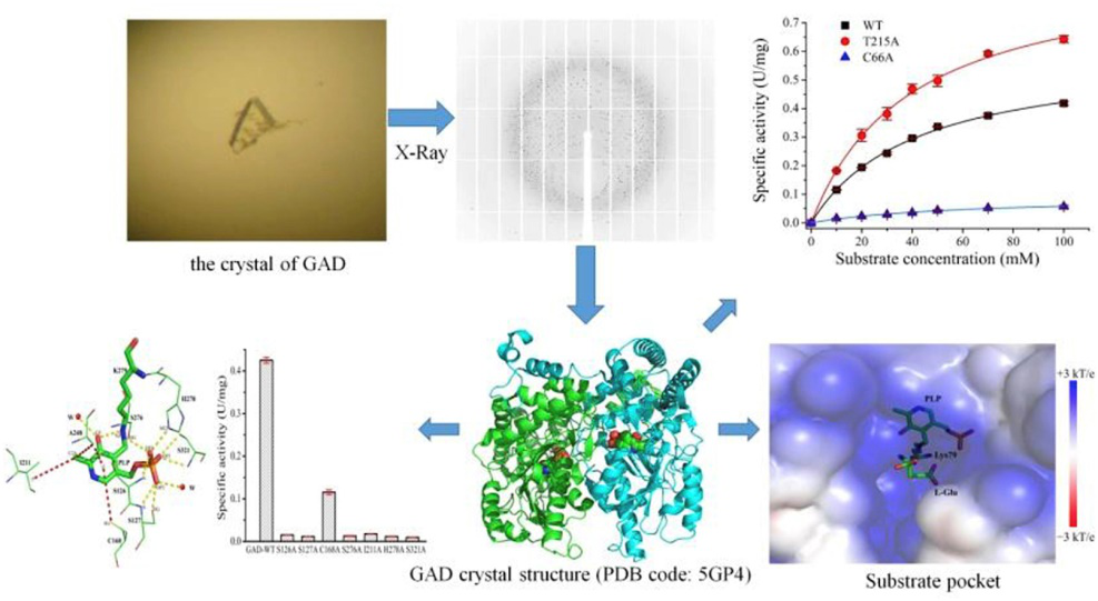 γ-氨基丁酸(GABA)是一种天然存在的非蛋白质氨基酸,具有降血压、抗抑郁、抗惊厥、改善睡眠等多种重要的生理功能,在食品、医药、化工等领域具有广阔的应用前景。以磷酸吡哆醛为辅酶的谷氨酸脱羧酶(GAD),能专一、不可逆地催化谷氨酸脱去α-羧基生成GABA。如何通过蛋白质工程及代谢工程等技术手段实现生物催化法高效制备GABA,一直是国内外学者研究的热点。近日,公司黄俊教授团队在该领域取得重大进展。